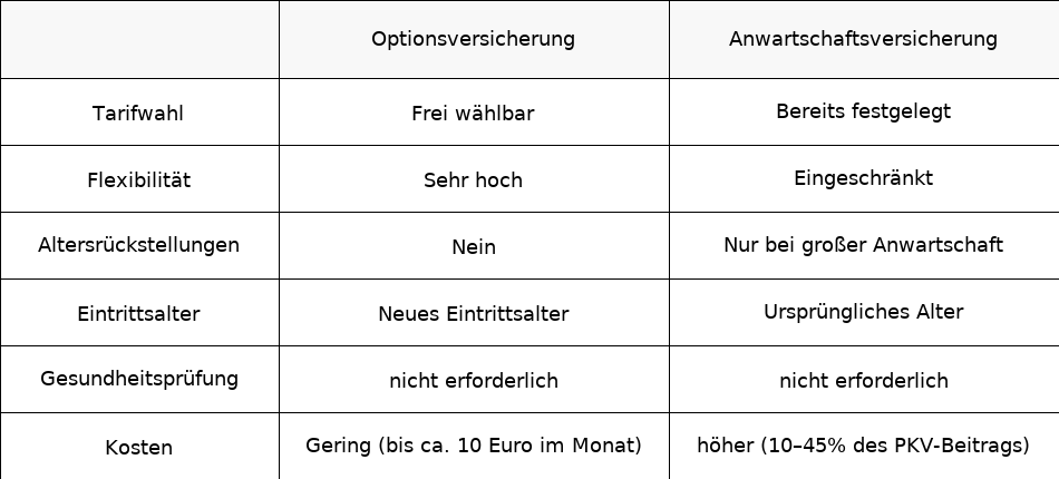 Optionsversicherung vs. Anwartschaft – Wo liegt der Unterschied?